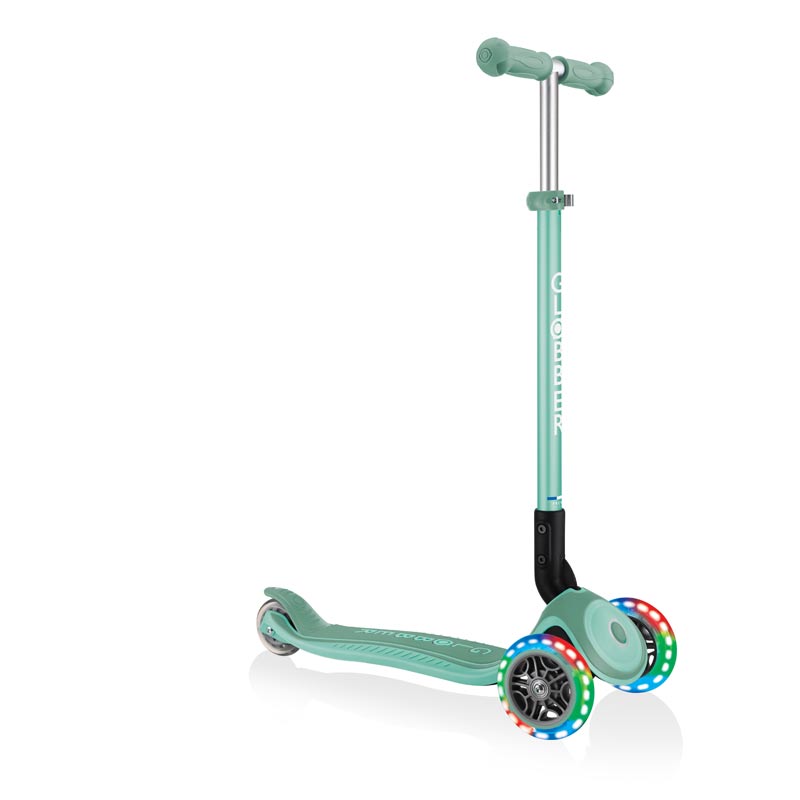 Детска сгъваема тротинетка със светещи колела PRIMO FOLDABLE PLUS LIGHTS – ментово зеленa