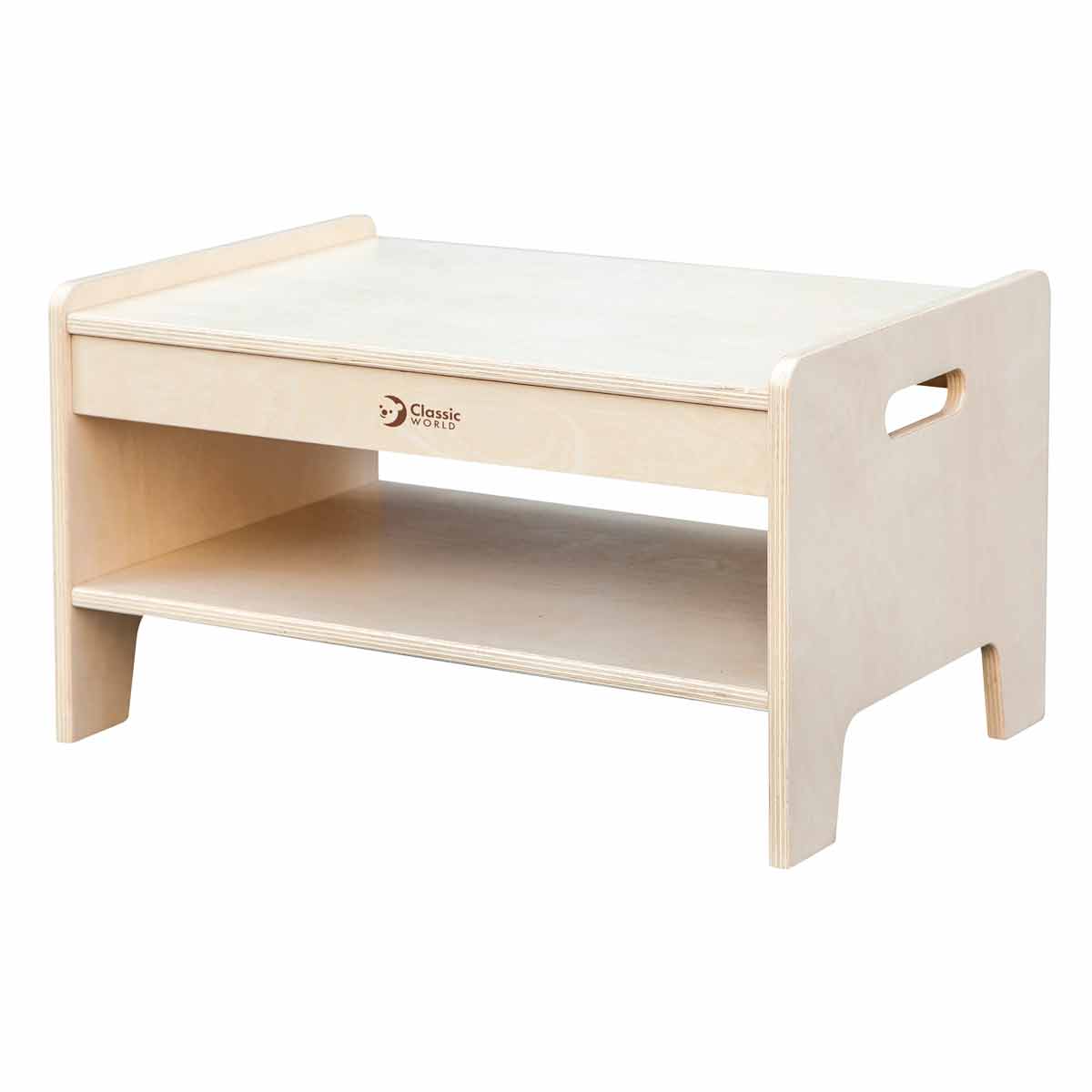 Удобна помощна масичка за детски градини и центрове, на която малчуганите ви могат да седнат да учат или просто да отпочинат, рисувайки или играейки на всевъзможни игри. Тя е изработена от висококачествено дърво и има рафтче за съ?