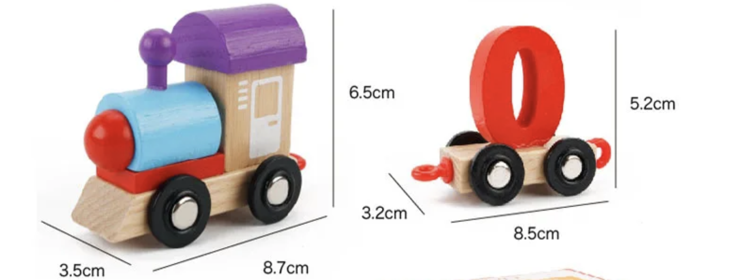 - Влакчето се състои от локомотив, вагон с всички цифри от 0 до 9.